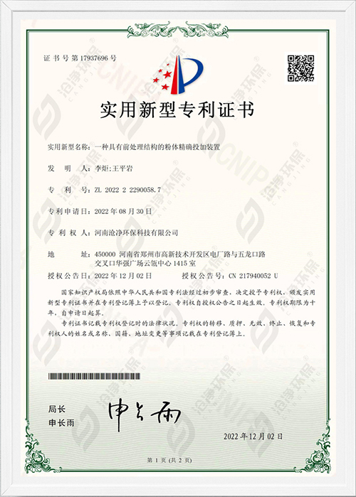 滄凈環(huán)保,是一家集科研、設計,工程施工、調試于一體的智能粉體投加系統-國家級高新技術企業【編號:GR202341000885】,旗下產品涵蓋水處理、危廢固廢處置,脫硫脫硝處理等領域,且通過ISO 9001:2015質量管理體系認證。